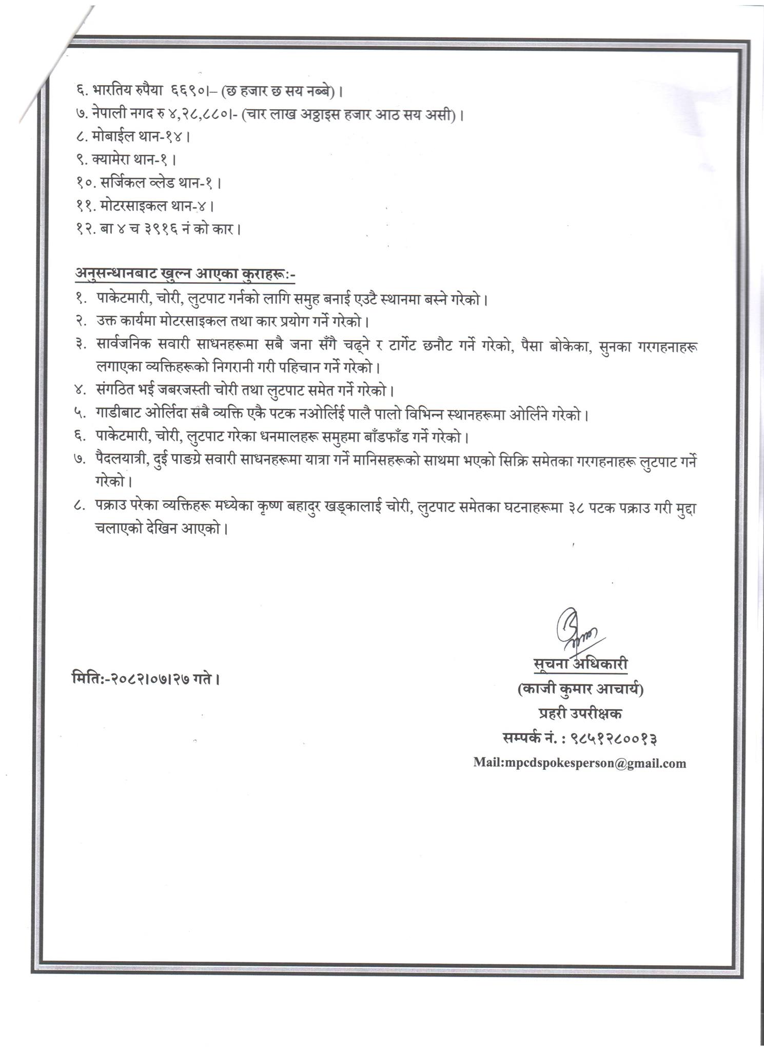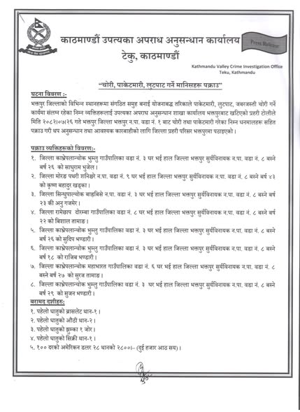चोरी, पाकेटमारी, लुटपाट गर्ने पक्राउ