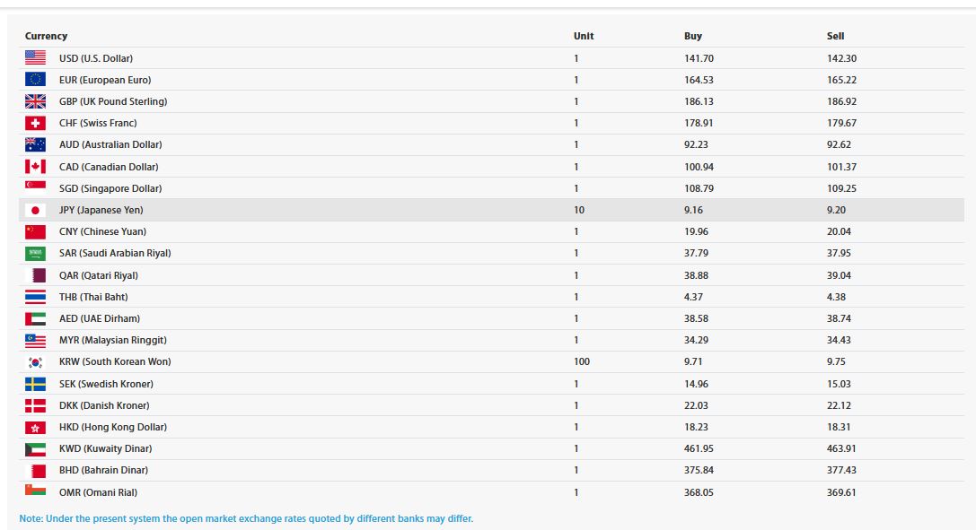 राष्ट्र बैङ्कअनुसार अमेरिकी डलर एकको खरिददर १४१ रुपैयाँ ७० पैसा र बिक्रीदर १४२ रुपैयाँ ३० पैसा निर्धारण गरिएको छ ।