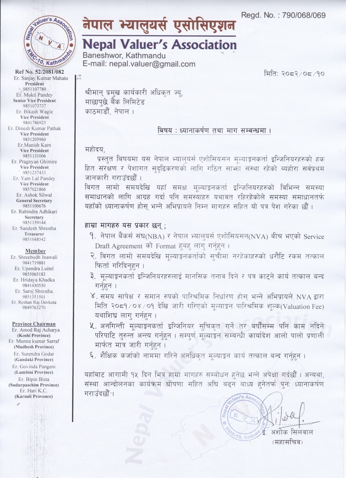 एनभिएका महासचिव इ.अशोक सिलवालले पनि विज्ञप्तीमार्फत बैंकलाई ध्यानाकर्षण गराएका छन् ।