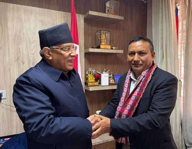 हर्क सम्पाङले निलम्बन गरेका उपाध्यक्षलाई प्रचण्डले गरे स्वागत
