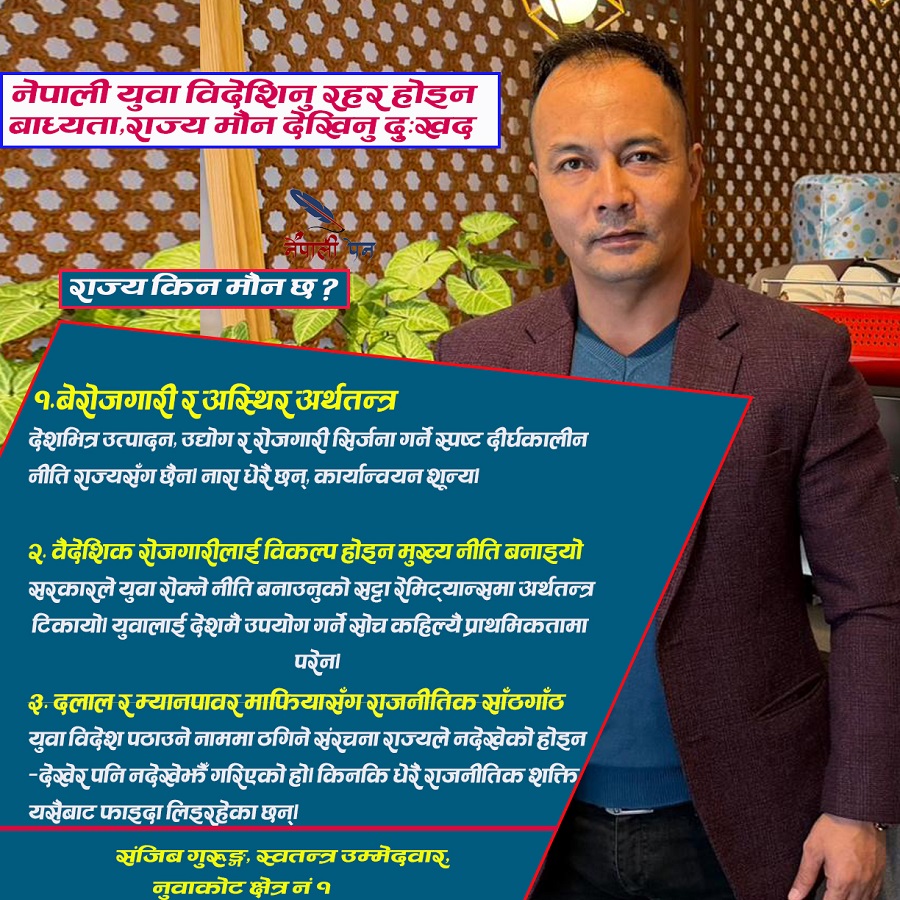 नेपाली युवा विदेशिनु रहर होइन, बाध्यता बनेको छ — र राज्य यसबारे निष्क्रिय, निरीय र मौन देखिनु नै सबैभन्दा दुःखद पक्ष हो।