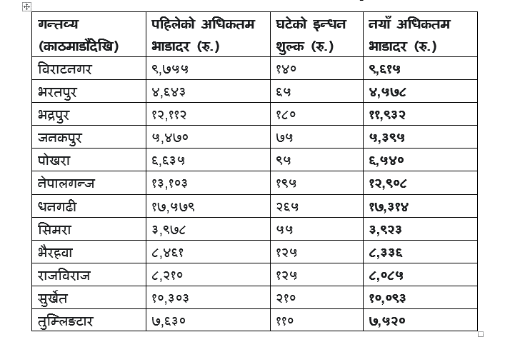 कुन रुटमा कति घट्यो मूल्य हेर्नुहोस् सूची