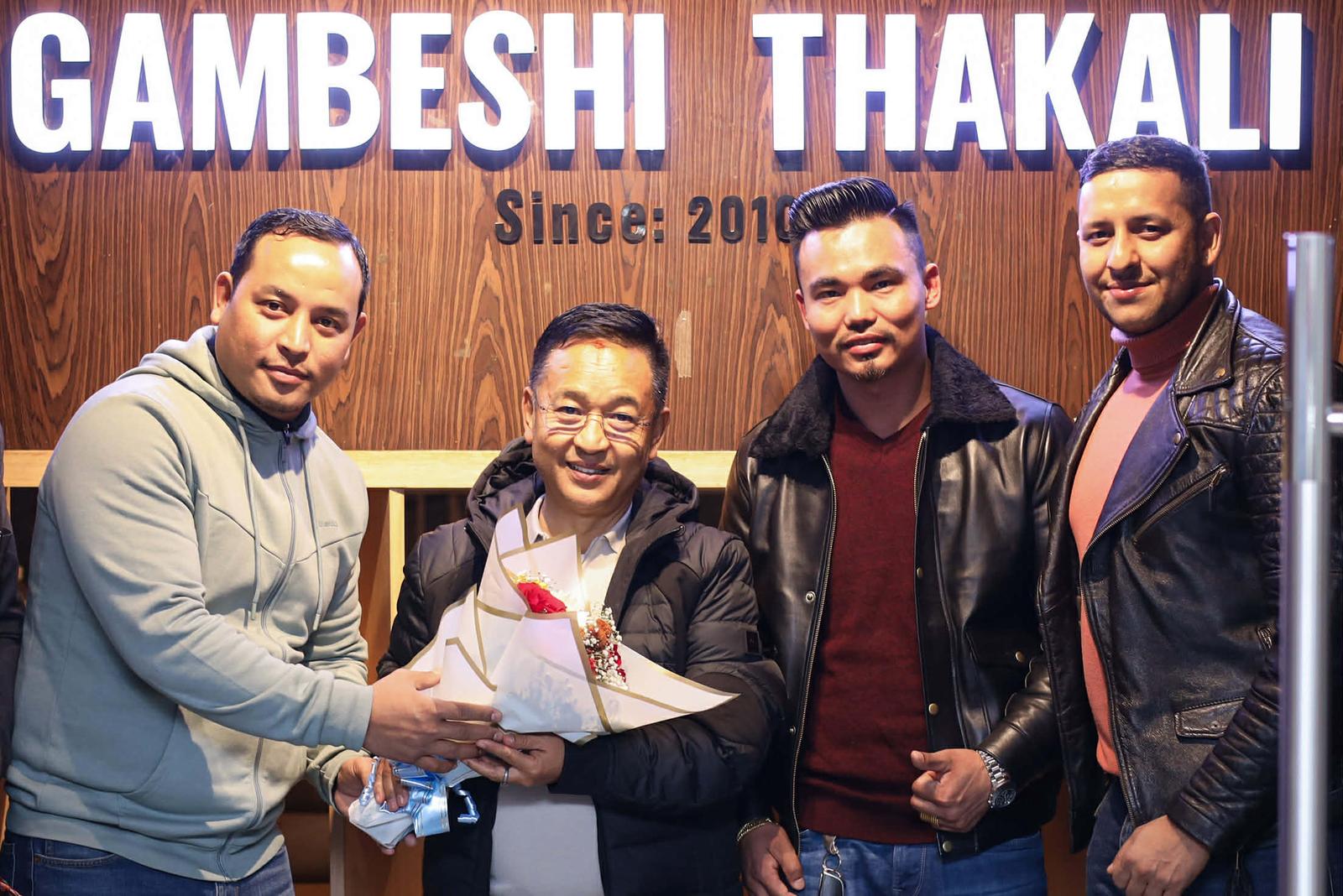 काठमाडौँ — भारतको सिक्किम राज्यका मुख्यमन्त्री प्रेमसिंह तामाङलाई काठमाडौँको लैनचोरस्थित मल्ल होटलमा सञ्चालित गामबेसी थकाली रेस्टुरेन्टमा भव्य स्वागत गरिएको छ। थकाली किचेनका सञ्चालक सन्दिप तामाङ र सुजन लामाले मुख्यमन्त्री तामाङलाई पारम्परिक आतिथ्यतासहित सम्मानपूर्वक स्वागत गरेका हुन्।