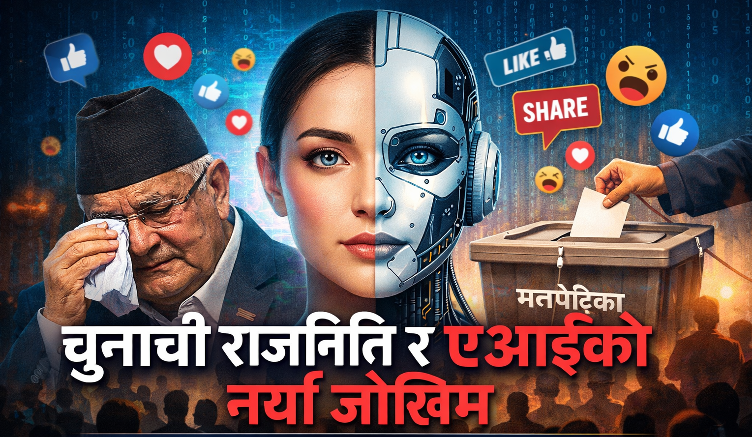 यसको पछिल्लो उदाहरण एमाले महाधिवेशनसँग जोडिएको एक भाइरल भिडियो हो, जहाँ प्रदीप ज्ञावालीले अपेक्षित पद नपाएपछि रोएको दाबी गरिएको थियो। धेरैले सो भिडियो सत्य ठानेर सेयर गरे, बहस गरे, आलोचना गरे। तर पछि त्यो भिडियो एआईबाट निर्मित रहेको खुलेको थियो। यो घटनाले एआईले चुनावी राजनीति र जनमतलाई कसरी सजिलै भ्रमित गर्न सक्छ भन्ने स्पष्ट संकेत गरेको छ।