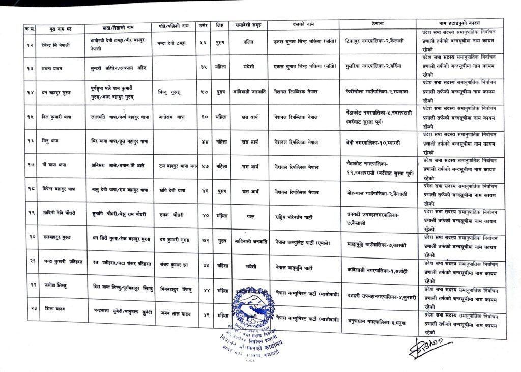 समानुपातिकको बन्द सूचीबाट नाम हटेका ७६ उम्मेदवारको नामावली हेरौं