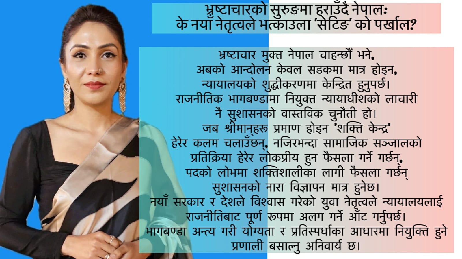 आकृति रायमाझी । नेपालको वर्तमान राजनीतिक परिदृश्यमा एकातिर युवा नेतृत्वको उदय र नयाँ सरकारको सुशासनप्रतिको प्रतिबद्धताले आशा जगाएको छ भने अर्कातिर दशकौँदेखि संस्थागत भएको भ्रष्टाचारको जरोले राज्यलाई निरन्तर चुनौती दिइरहेको छ।