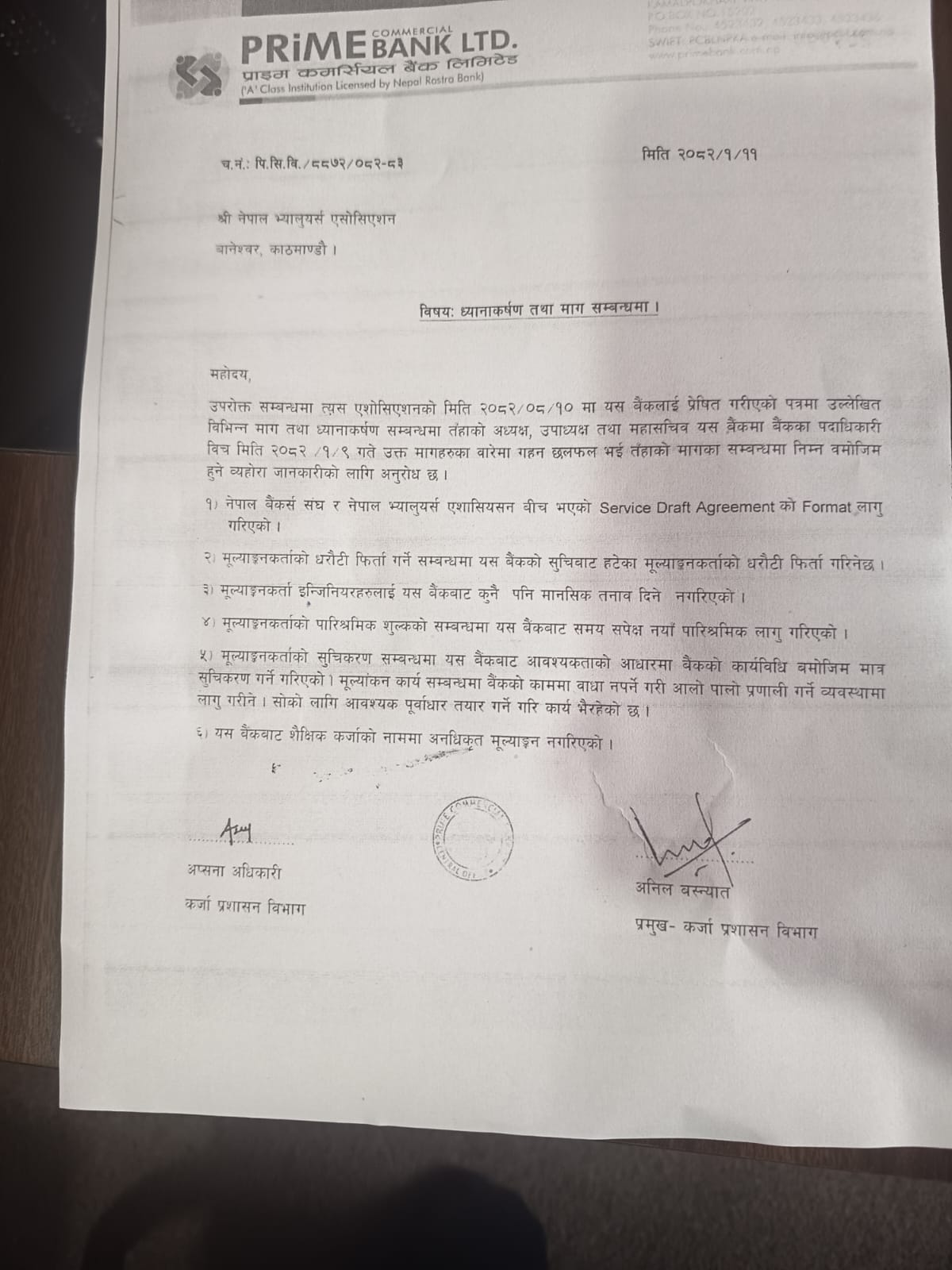 स्मरण रहोस् यसअघि यस्तो पत्र एनभिएले माछापुच्छे बैंक र नविल बैंकलाई पनि दिइसकेकोे छ ।